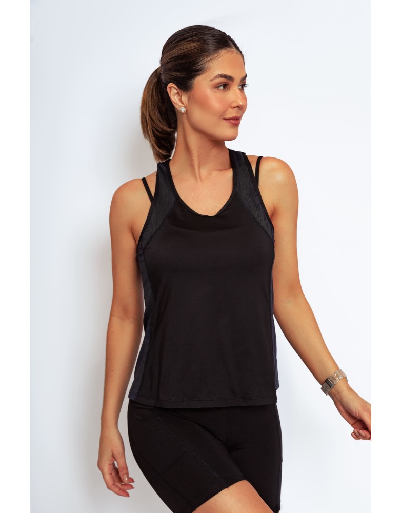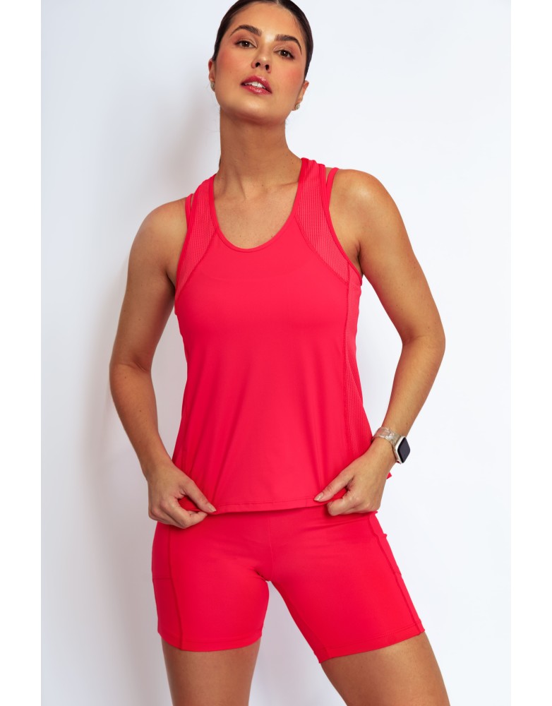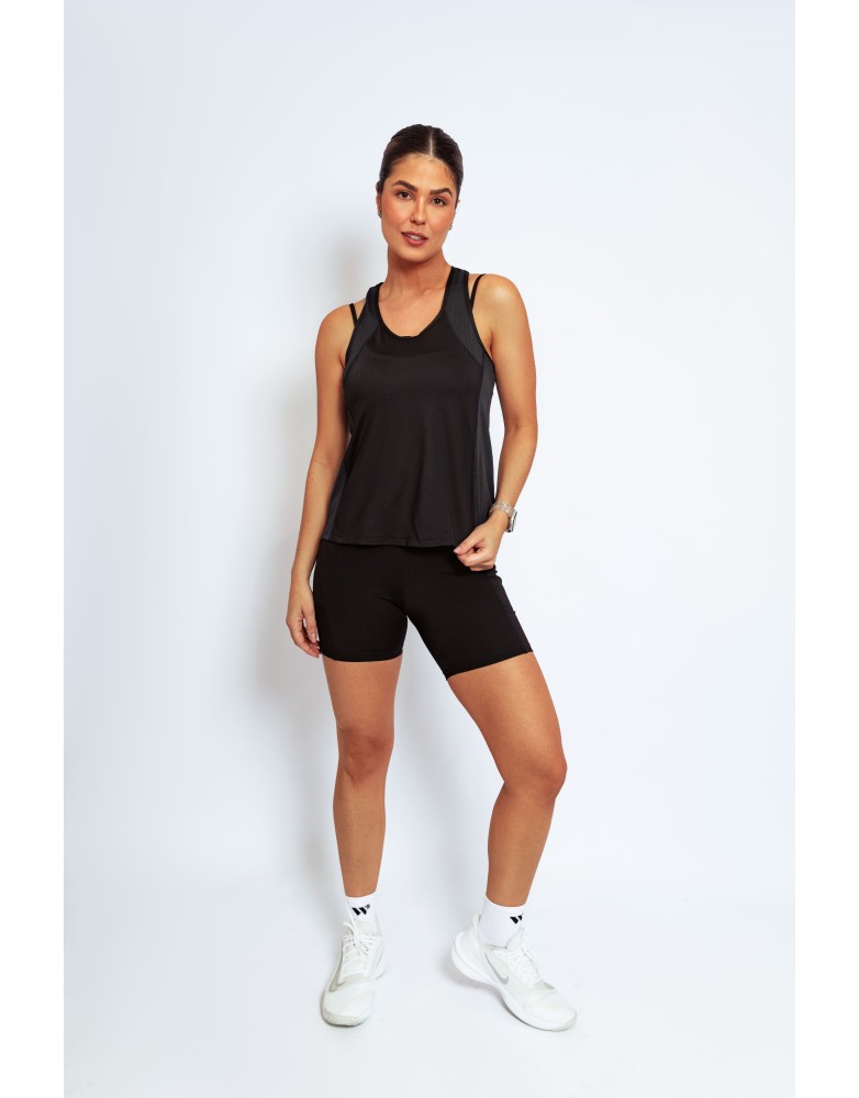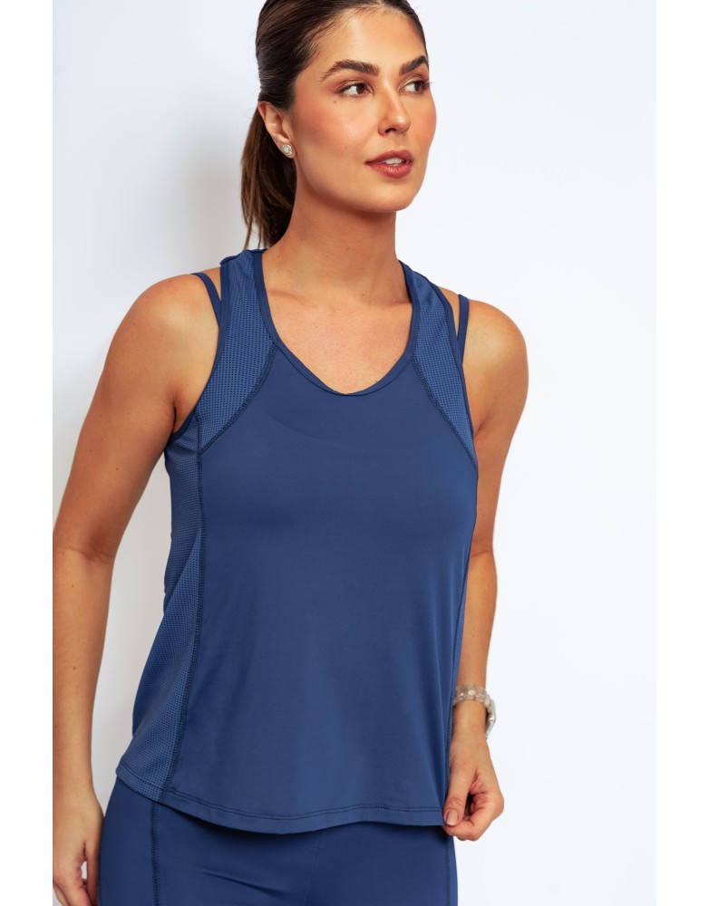 Leveza,respirabilidade e estilo para acompanhar seus movimentos. A regata Active Fit possui recortes laterais estratégicos e acabamento pespontado, garantindo visual esportivo com toque moderno.Confeccionada com uma combinação inteligente de tecidos, oferece estrutura leve, elasticidade e efeito furadinho para melhor transpiração e secagem rápida.Ideal para treinos intensos ou produções casuais.