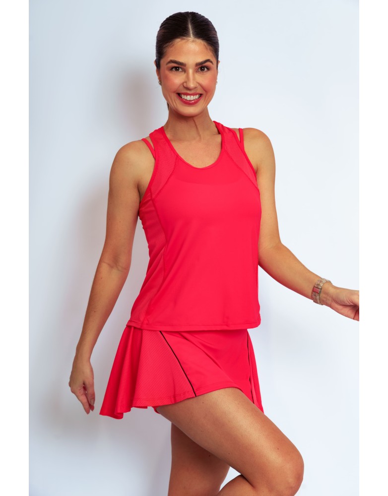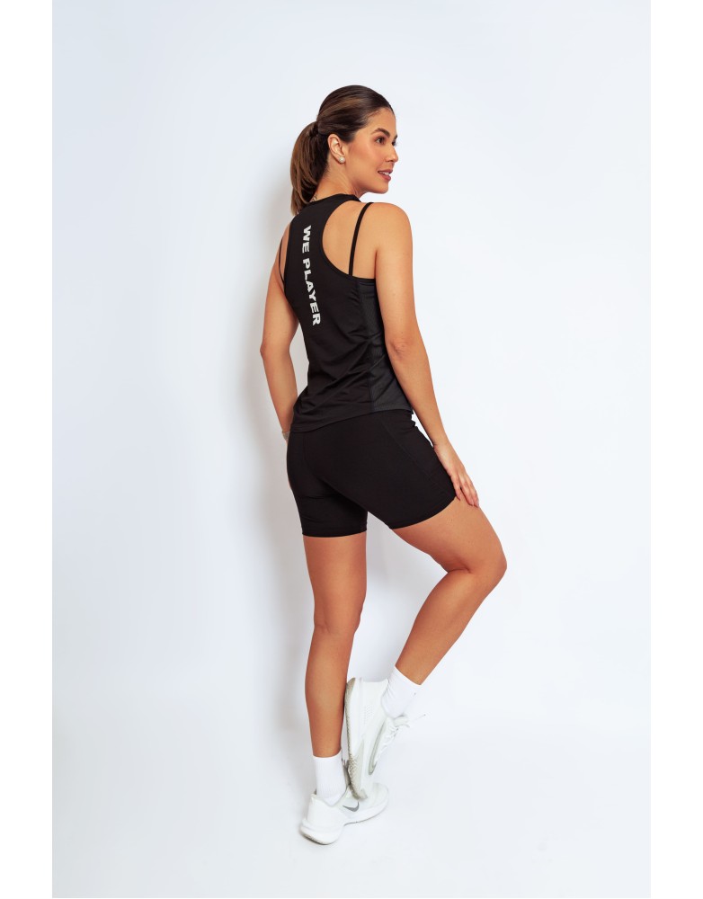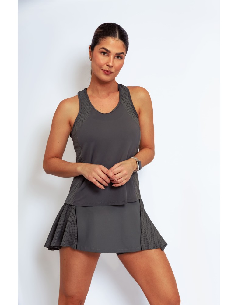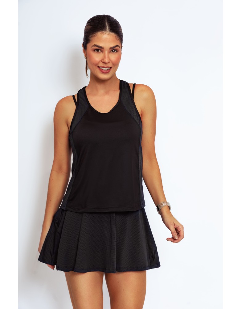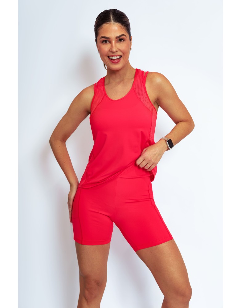 Leveza,respirabilidade e estilo para acompanhar seus movimentos. A regata Active Fit possui recortes laterais estratégicos e acabamento pespontado, garantindo visual esportivo com toque moderno.Confeccionada com uma combinação inteligente de tecidos, oferece estrutura leve, elasticidade e efeito furadinho para melhor transpiração e secagem rápida.Ideal para treinos intensos ou produções casuais.