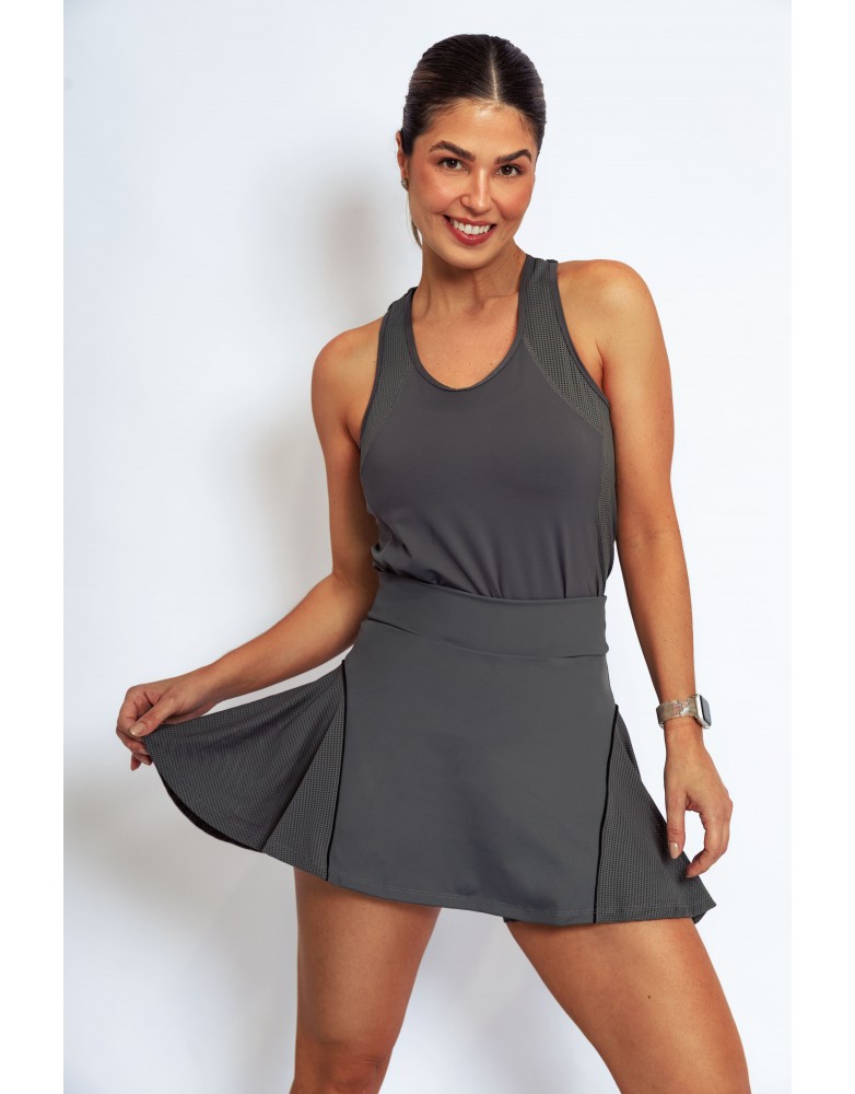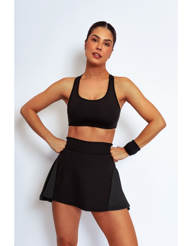 Liberdade de movimento com design estratégico. Com godês laterais a saia entrega fluidez e estilo em um só look. O cós anatômico garante ajuste confortável e firmeza durante a prática esportiva. Confeccionada com tecidos que oferecem compressão moderada, zero transparência e efeito furadinho tem secagem rápida, promovendo alta performance com leveza e sofisticação.