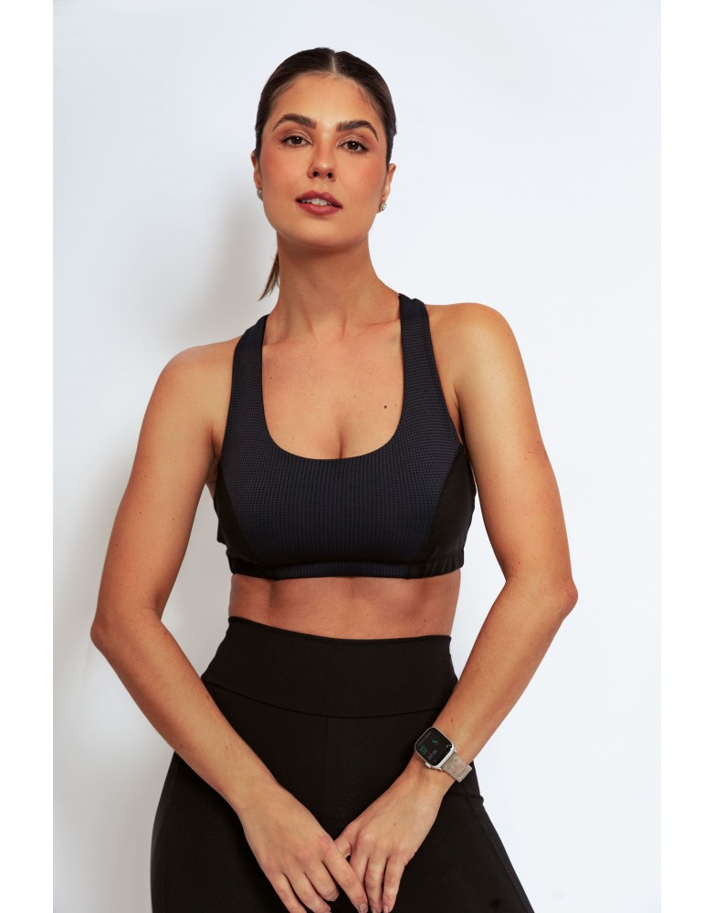 Respiro e sustentação para os treinos. O top com modelagem nadador tem recortassem tecido leve e furadinho na frente e nas costas, proporcionando ventilação estratégica. A estrutura com forro total na frente e elástico rebatido garante conforto, segurança e sustentação na medida certa.